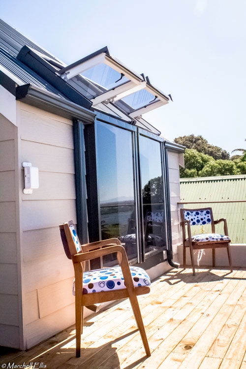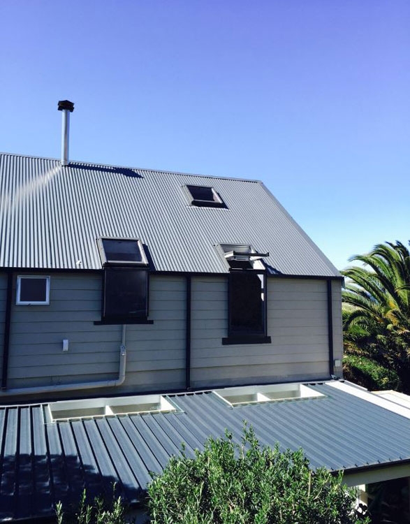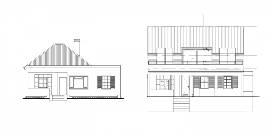 The roof was raised to create a new second level with three bedrooms and two bathrooms. A balcony and combination roof window-windows maximises the views over Muizenberg. Two stoeps were added - one to the front and one to the back.